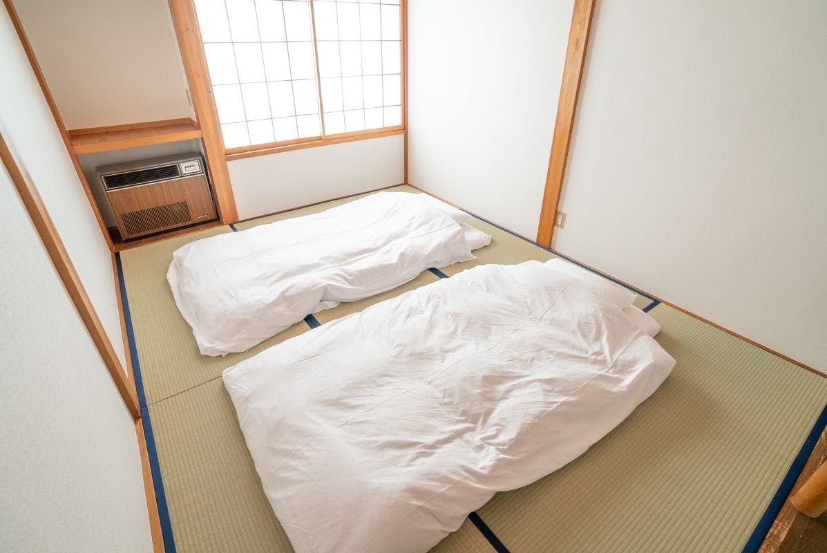 ・和室裡沒有床,壁櫥裏放有日本的被褥(布團),把墊子鋪在榻榻米上,再鋪上床單,然後蓋上被子。