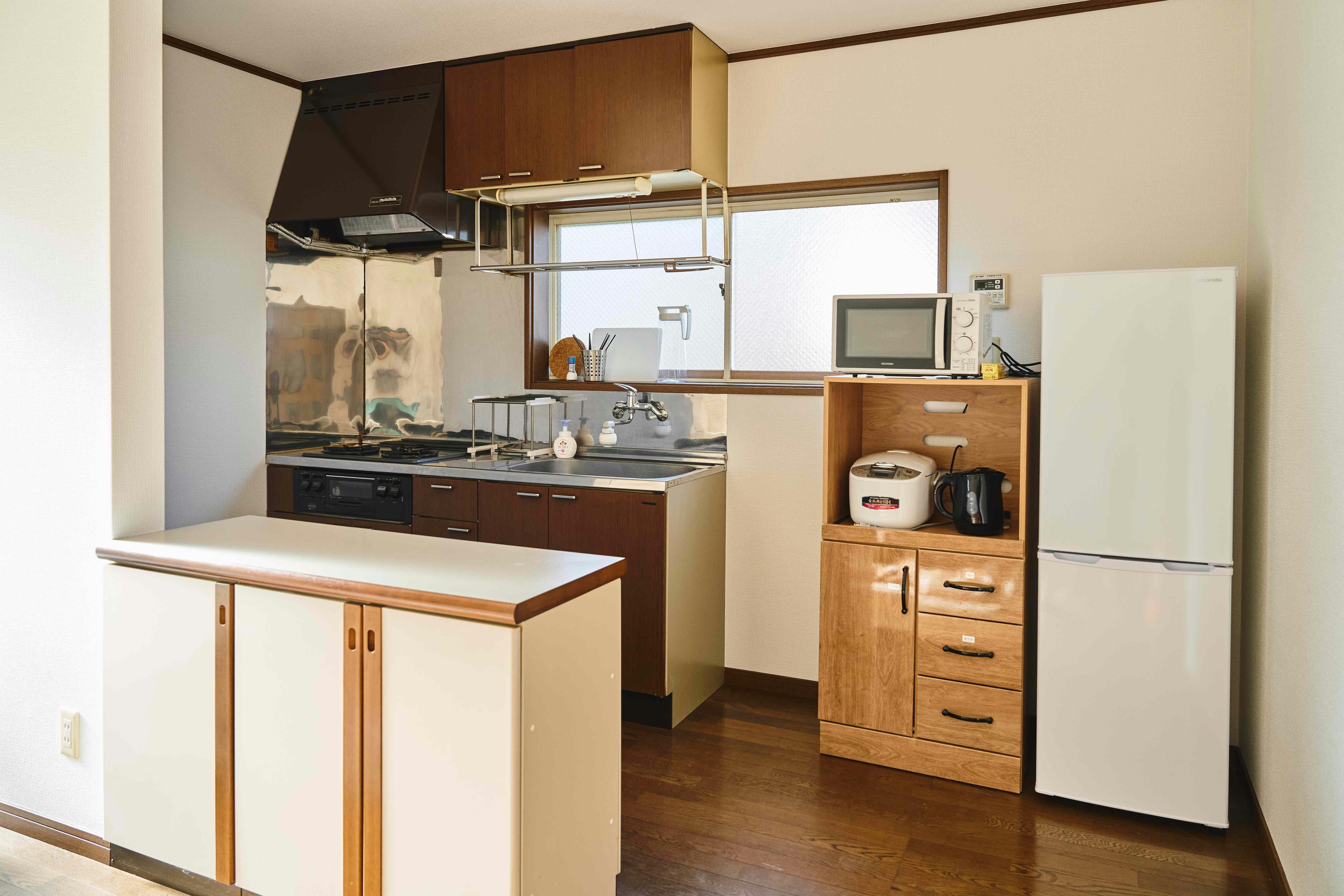 廚房:電冰箱、微波爐、電熱水壺、電飯鍋、鍋具、廚房用品